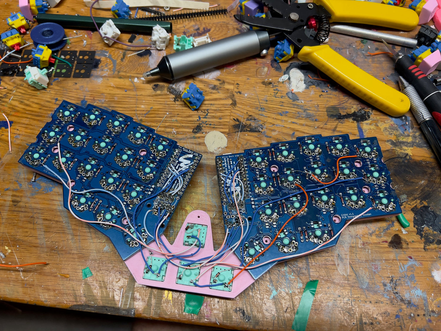 On September 19, 2022, I built the Scotto40 which I consider my first real handwired keyboard. It was a simple 3x10 ortholinear keyboard with a somewhat weird bottom row because I couldn’t figure out how to do stabilizers. Very quickly I saw how simple handwiring was and got hooked. About a month later I had already made over 10 handwired boards and just kept going.