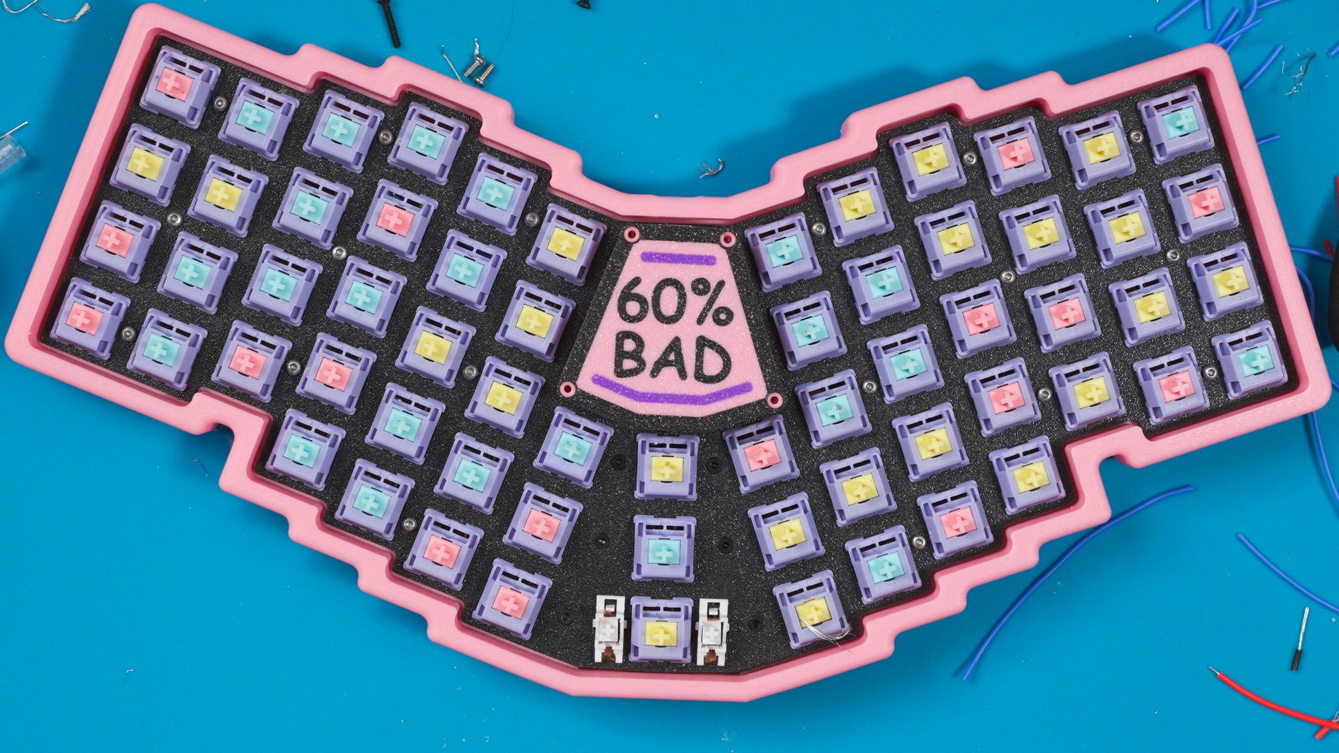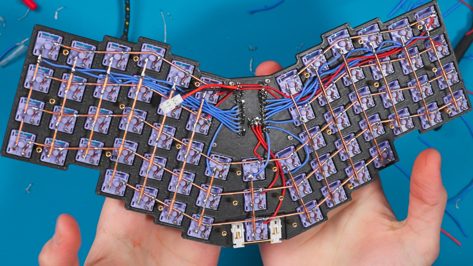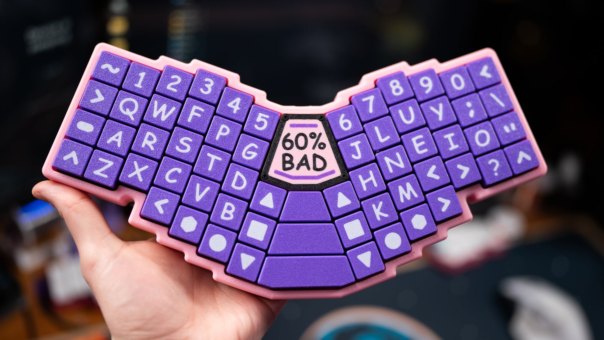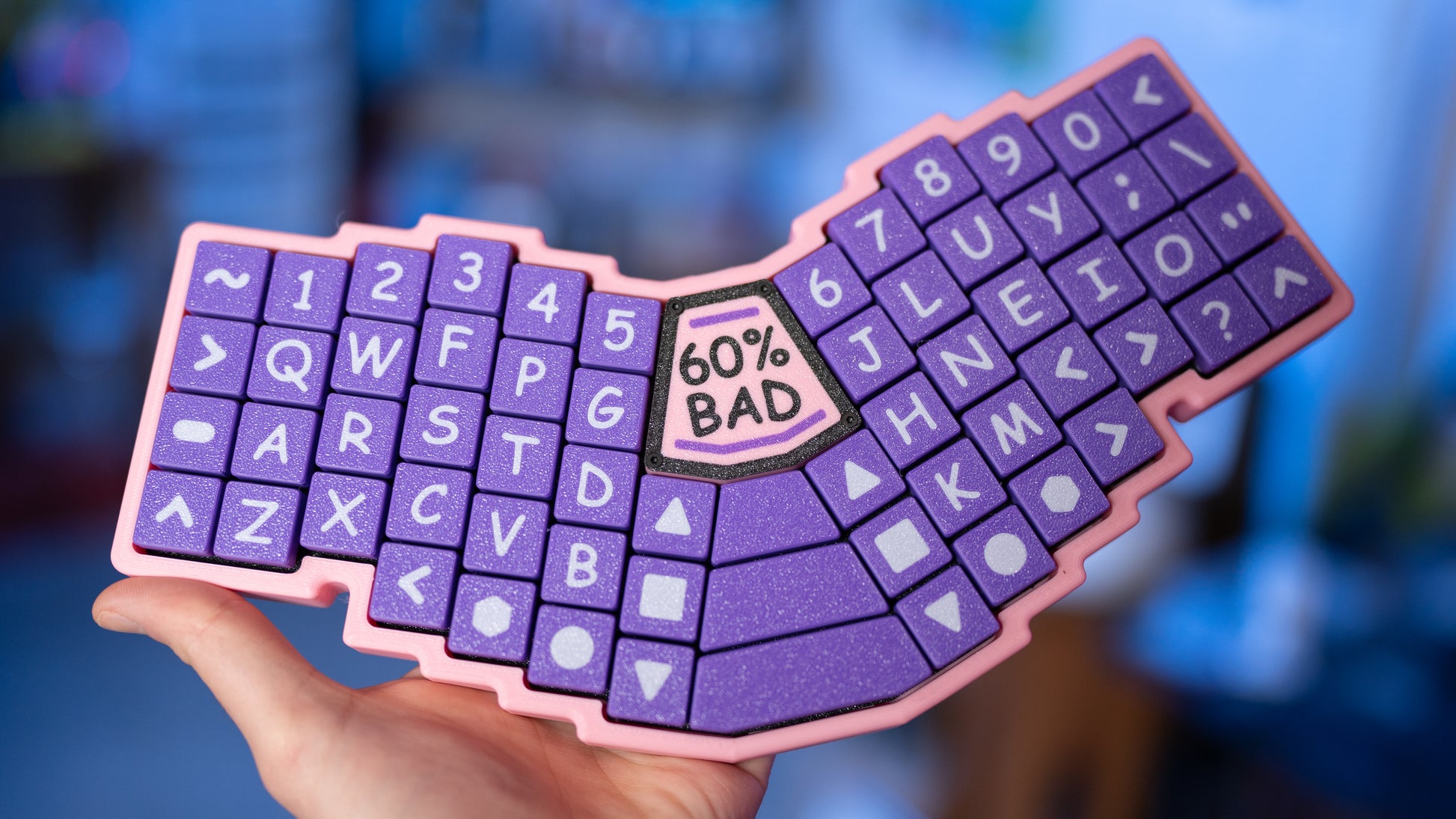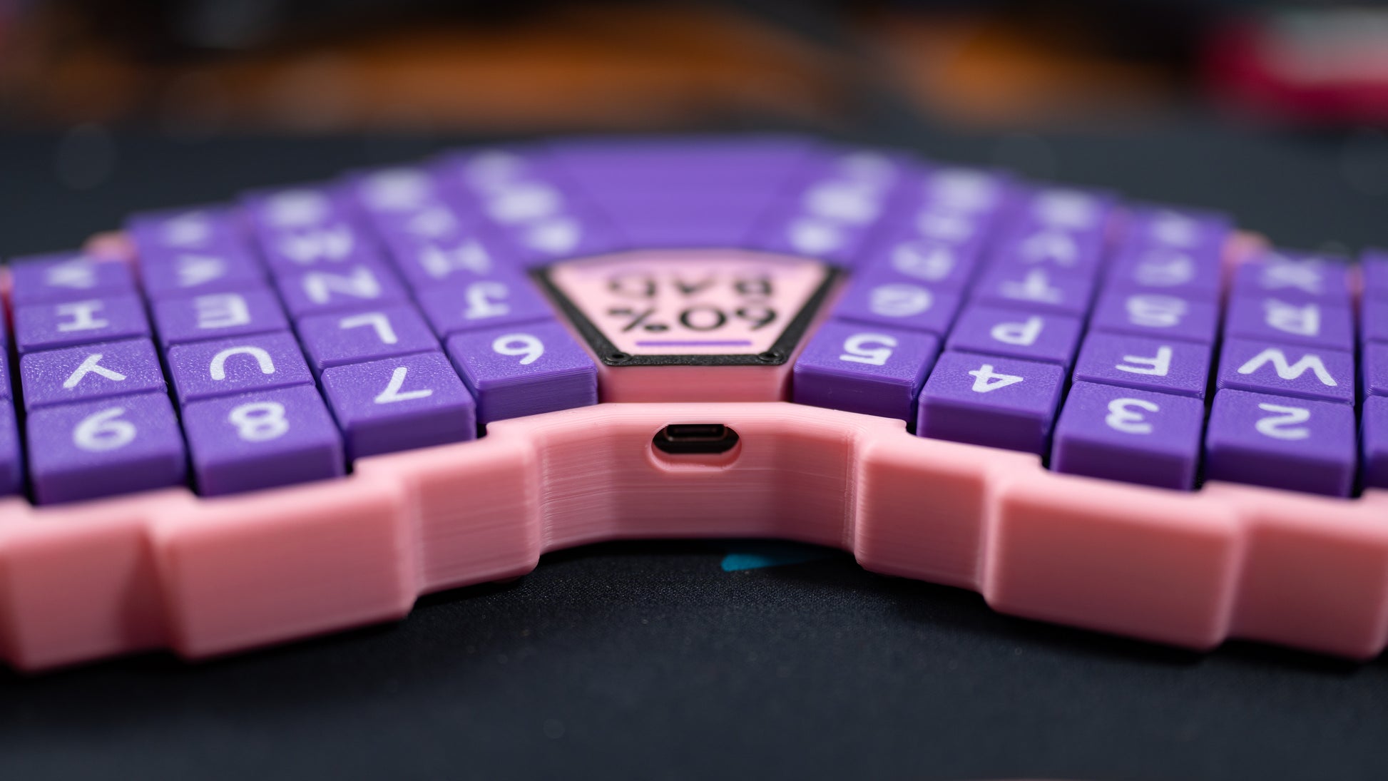 The Scotto63 is a 63-key 60% split-monoblock column-staggered ortholinear wireless keyboard with a large 750mah battery.