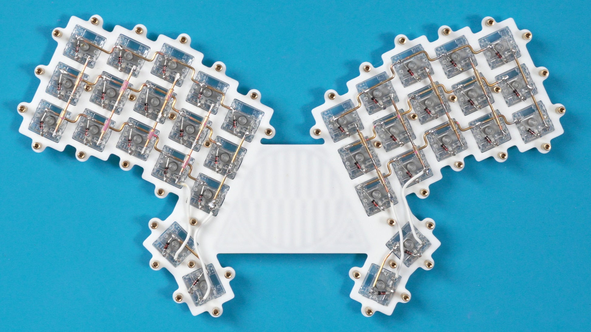 The ScottoWing is a 3x5 (34-keys) or 3x6 (40-keys) split monoblock ergonomic column-staggered keyboard. The handwired edition supports Choc switches with 18x17mm spacing and the PCB Edition supports MX switches.